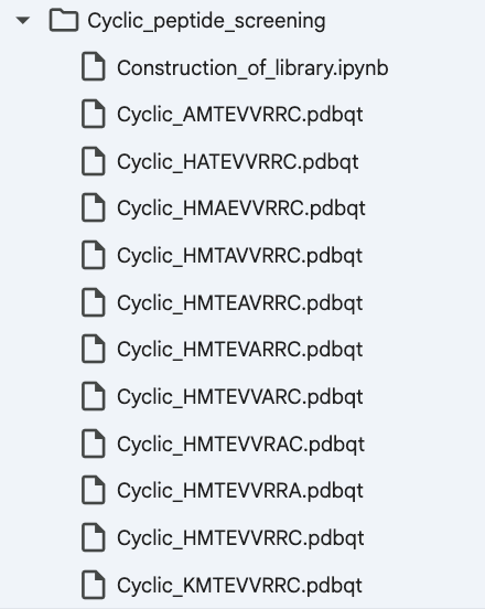 上記のコードが全てrunされると、設定したoutputディレクトリに環状ペプチドライブラリが出力されます!
