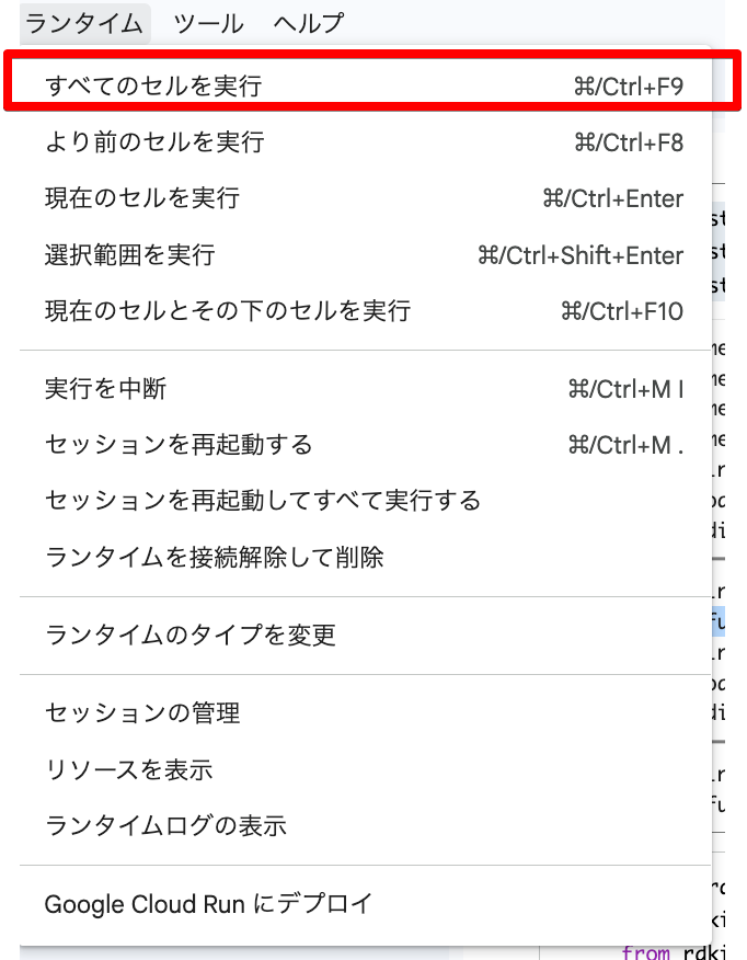 上のランタイム→すべてのセルを実行で実行できます