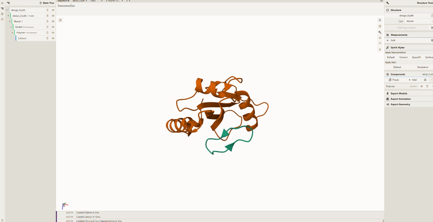 早速、Mol* Viewerを利用してdesign_0と標的タンパク質を可視化してみましょう!